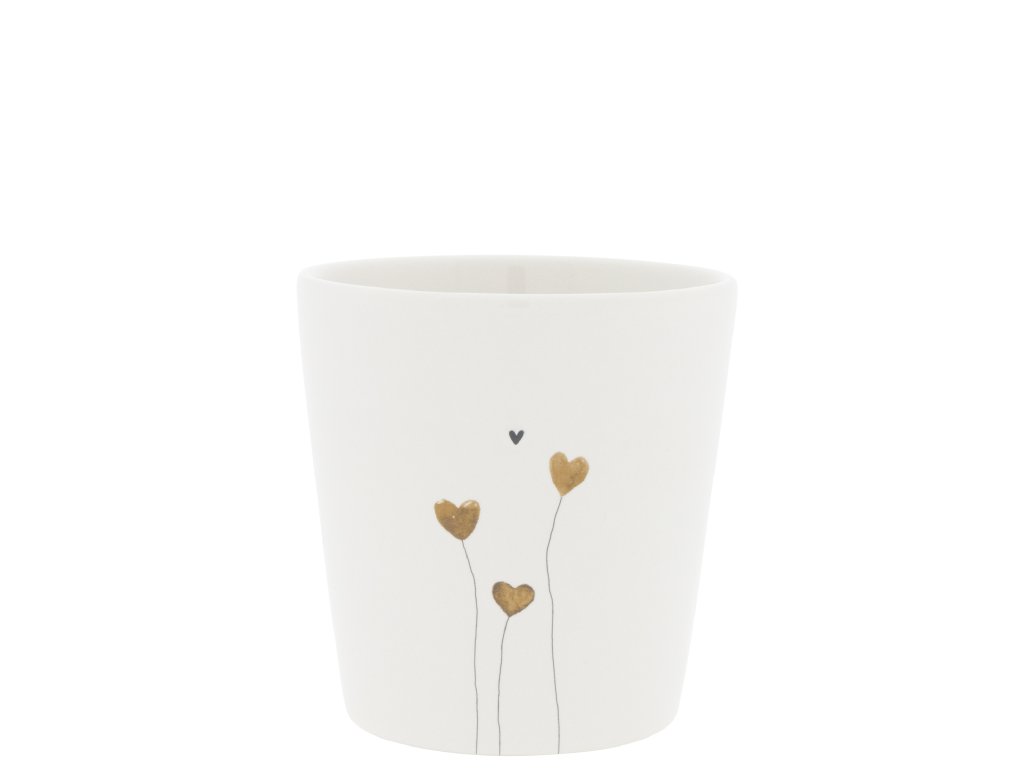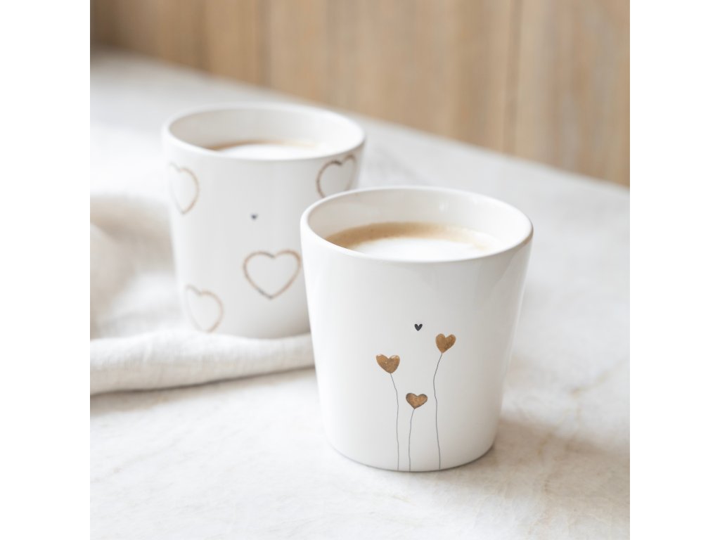 Hrneček bez ucha Hearts in bloom od Bastion Collections v sobě spojuje něhu květin a lásku k detailu. Elegantní keramika s jemným motivem srdíček v květu rozzáří každý okamžik vašeho dne.