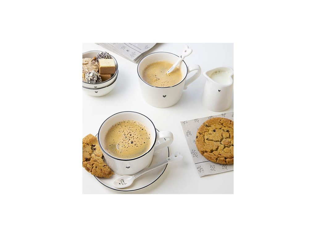 Tento elegantní hrneček v čistě bílém provedení s černým srdíčkem je ztělesněním minimalismu, který nikdy neomrzí. Působí jemně, přirozeně a dokonale zapadne do jakéhokoli interiéru – od moderního po rustikální. Díky svému nadčasovému tvaru a decentnímu lesku se stane základem každého servírování. 🌿