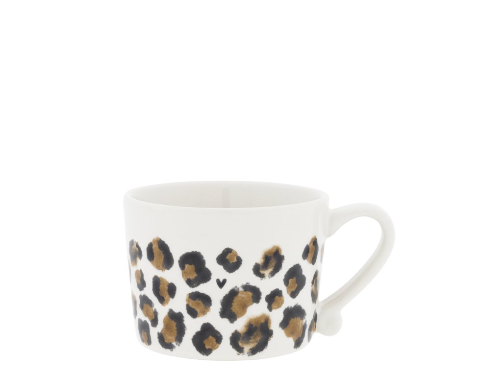Elegantní hrneček Bastion Collections Leopard 175ml v bílé barvě s jemným leopardím vzorem a decentním srdíčkem. Stylový doplněk pro vaši kávu či čaj, který dodá šmrnc každému stolu.