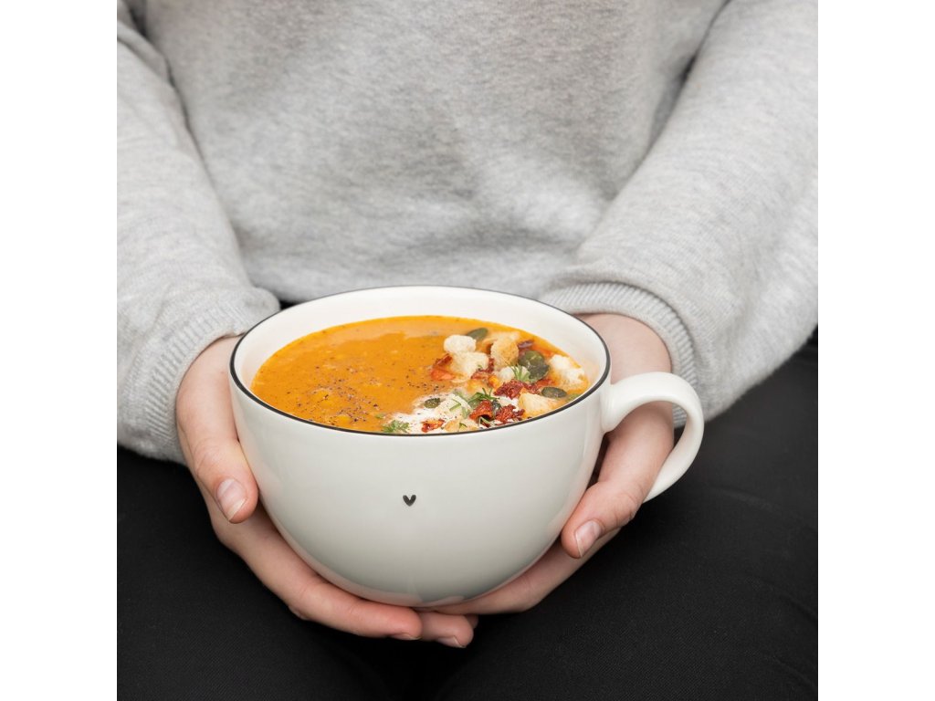 S objemem 450 ml je ideální pro servírování polévek, kaší, salátů nebo menších pokrmů. Ouško umožňuje pohodlné držení, zatímco černý lem dodává jemný kontrast a sofistikovaný detail. Vyrobena z kvalitní glazované keramiky, odolná a snadno udržovatelná.