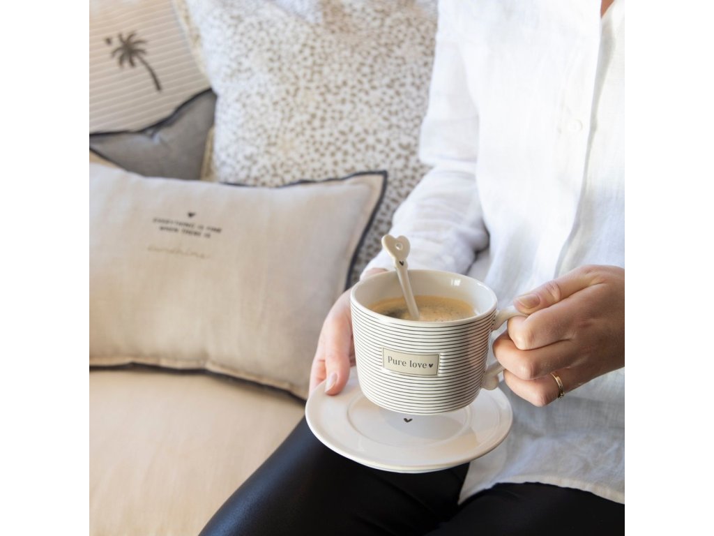 Díky svému univerzálnímu vzhledu se snadno kombinuje s hrnečky různých vzorů – od romantických motivů srdíček až po přírodní tóny kolekce Natural Stripes.