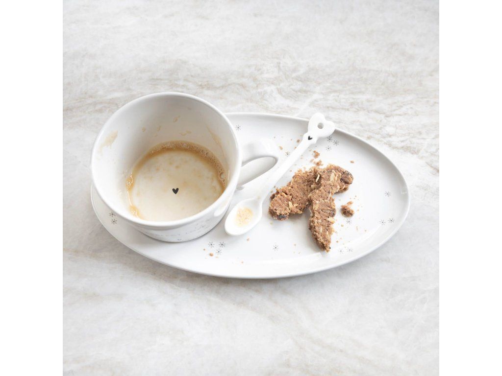 Díky svému většímu oválnému tvaru 25,5x14,5cm nabízí dostatek prostoru pro hrnek nebo šálek, ale zároveň jej můžete využít i jako servírovací talířek na sušenky, dezerty či drobné občerstvení. Je praktickým i estetickým doplňkem pro každodenní použití.