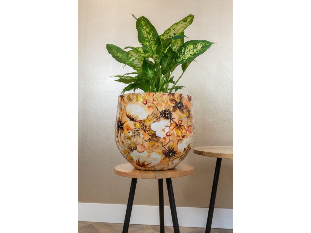 Ručně malovaný TS Lammie Cotton Cream obal D15 – originální květináč od holandské značky TS Collection. Krémový design, autorská tvorba umělkyně Lammie, kvalitní ruční malba, ideální pro pokojové rostliny.