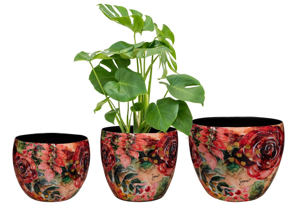 Ručně malovaný obal na květináč TS Lammie Rose Rouge D15 – designový květináč od holandské značky TS Collection, autorská tvorba umělkyně Lammie, výrazný červenorůžový odstín, luxusní doplněk interiéru.